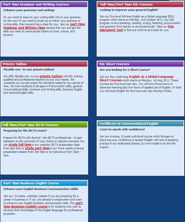 Our job is to inspire you to express yourself with confidence through the delivery of high-quality English language courses which combine 3 hours of classroom teaching in small classes of 15 students with 2 hours of e-learning in our state of the art multimedia lab. In line with this commitment to educational quality at Ascend, we offer the following support services to our international students: