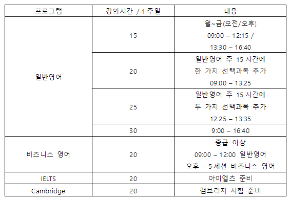 - Áß½ÉÀÇ È°¹ßÇÑ ¹æ°ú ÈÄ È°µ¿ - ÇÑ ¹Ý Æò±Õ Àοø 12¸í(¼º¼ö±â 15¸í) - Quality and Qualifications Ireland (QQI, formerly NQAI and ACELS), MEI, ALTO µî·Ï - ¹«·á À½·á¿Í ½º³¼ÀÌ Á¦°øµÇ´Â Ä«ÆäÅ׸®¾Æ - ¹æ°úÈÄ ´Ù¾çÇÑ ¾×ƼºñƼ: Clubs (ÃÖ¼Ò 2ÁÖ¿¡ Çѹø), Free Walking Tours of Dublin ( ¸Å ¿ù¿äÀÏ ¿ÀÈÄ), Free Cultural Excursions (ÀÏÁÖÀÏ¿¡ 2/3¹ø), Very popular paid excursion (ÀÏÁÖÀÏ¿¡ Çѹø), Social Evening Events (ÀÏÁÖÀÏ¿¡ Çѹø), Parties ( 7¿ù-9¿ù 2ÁÖ¸¶´Ù, °Ü¿ï 4ÁÖ¸¶´Ù), Excursions (¸ÅÁÖ) - ¸Å´Þ¸¶´Ù ÁÖÁ¦¸¦ Á¤ÇØ ÆÄƼ¸¦ °³ÃÖ |