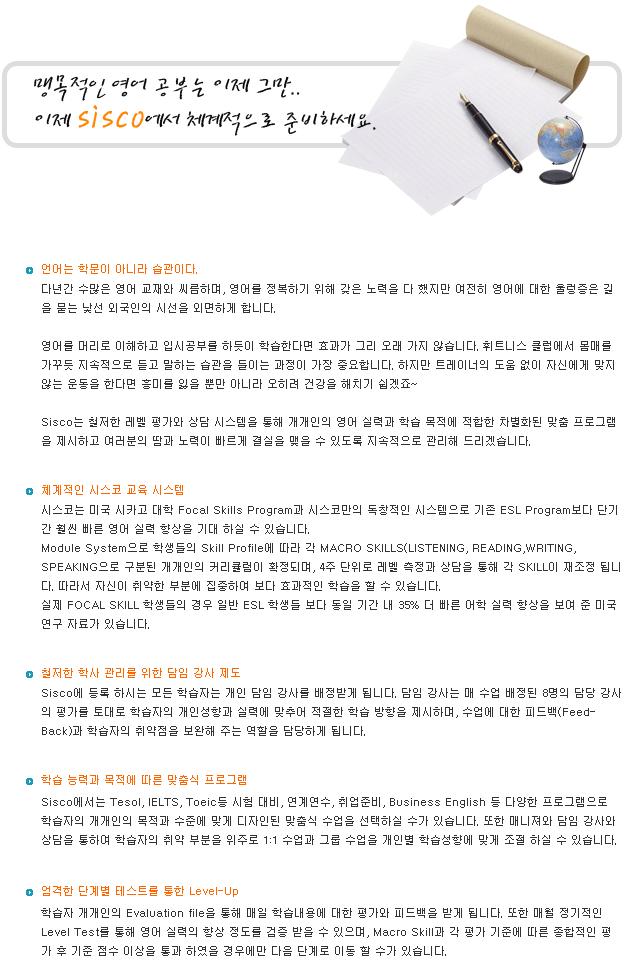 ½Ã»ç¼º ÀÖ´Â Áß±Þ ÀÌ»óÀÇ ½Éµµ ÀÖ´Â ÁÖÁ¦·Î Speech, Debate, Presentations µîÀÇ TrainingÀ» ÅëÇØ ±â¾÷ü Ãë¾÷À̳ª, ¿¬°è¿¬¼ö, À̹Πµî¿¡¼ ½ÇÁ¦ °í±Þ¾îÈÖ¿Í Ç¥ÇöÀ» ±¸»çÇÒ ¼ö ÀÖ´Â ÇٽɰúÁ¤ÀÔ´Ï´Ù.